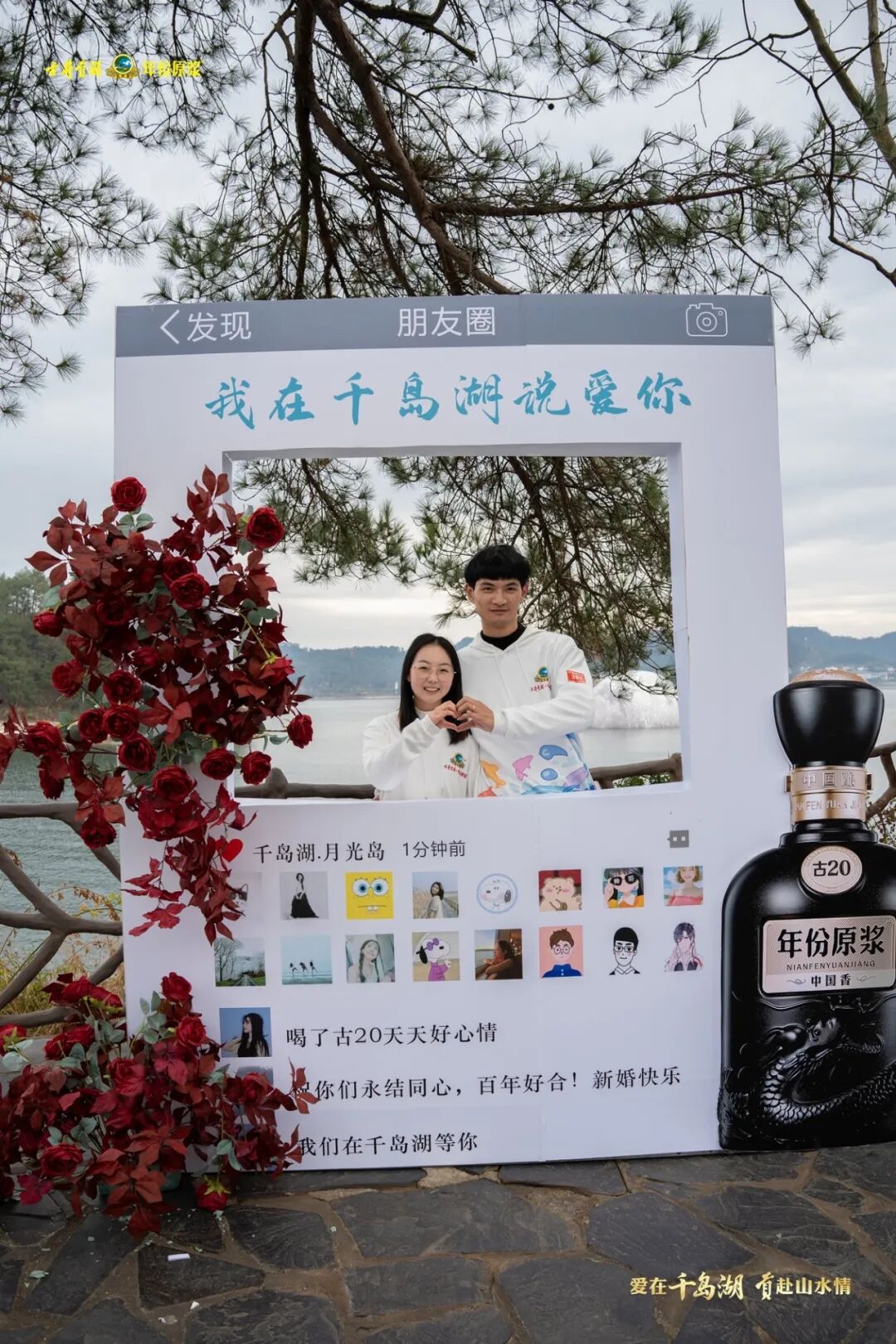 爱情是千岛湖最美的风景,千岛湖是爱情的永恒见证,而古井贡酒则是连接美好的桥梁。在这里,每一滴水都充满了爱的温度,每一个岛屿都刻满了情的誓言,每一份惊喜都写满了古井贡酒新的祝福。大家在古20专属打卡点拍照留念,记录与古井贡酒的美好瞬间。