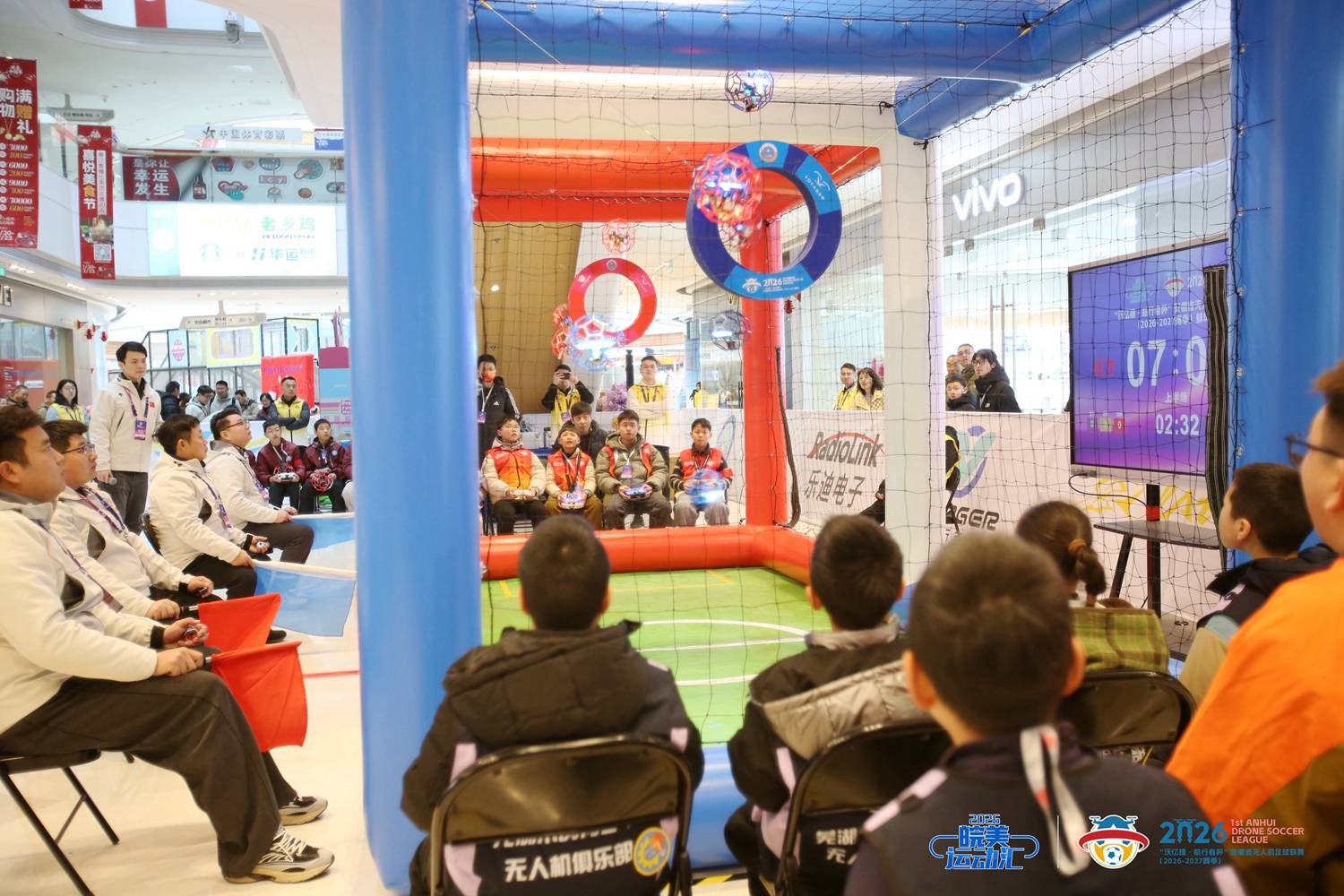 作为“皖美运动汇”的特色赛事,本次揭幕战深度践行“全民参与、全面融合”的赛事理念,突破传统体育场馆局限,将科技竞技赛场搬进商业综合体,成为我省“体育赛事进商圈”的标杆实践。赛事吸引全省23个参赛单位、83支队伍、300余名选手同台竞技,涵盖公开组与U12组四大竞赛类别,兼顾不同年龄段、不同技术水平爱好者的参与需求,选手们操控搭载球形保护框架的无人机,在“空中绿茵场”上展开速度与策略的碰撞,精准的操控、默契的配合、精彩的对抗,为现场观众呈现了一场兼具科技感与观赏性的视听盛宴,让市民在逛街休闲之余邂逅体育魅力,推动科技体育全民普及。
